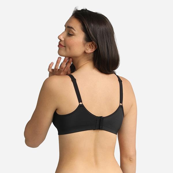 Biustonosz damski bez fiszbin, szerokie ramiączka, świetne podtrzymanie, miękkie miseczek, koronkowe detale, zapięcie z tyłu na 4 haftki.